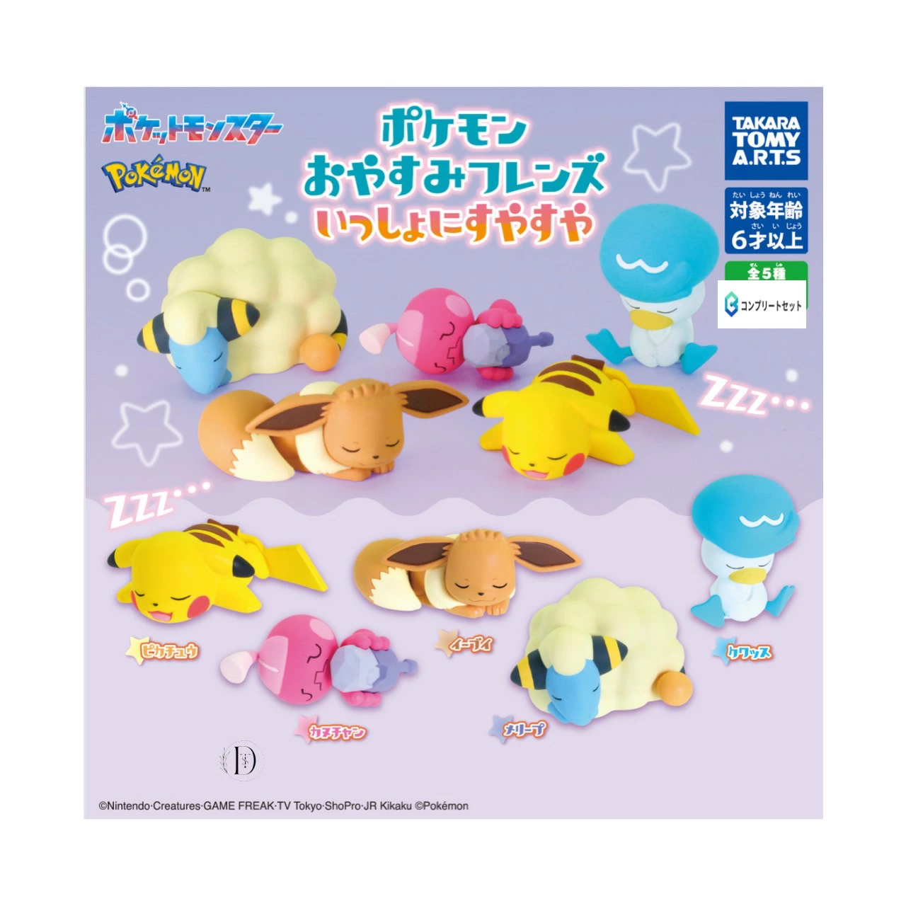 | ピカチュウ イーブイ クワッス カヌチャン メリープ |